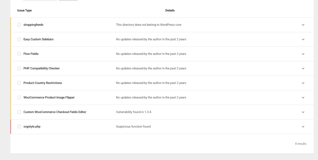 On one recent client audit, we found 8 issues on a single site – abandoned plugins with no updates in over 2 years, a known vulnerability in a checkout plugin, and a suspicious PHP file that didn’t belong there. This was a live WooCommerce site taking payments and in all honesty, wasn’t fit to be online.